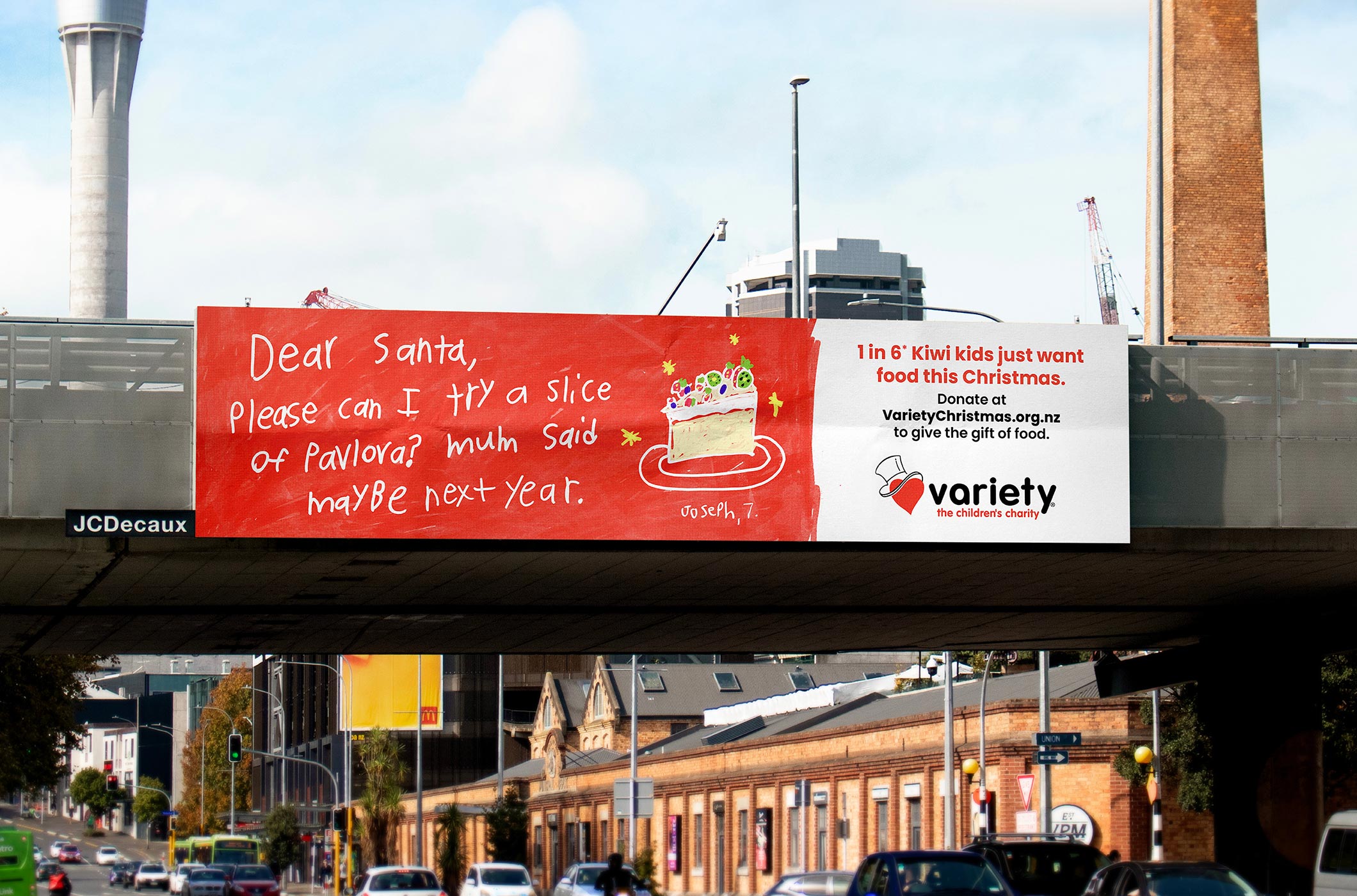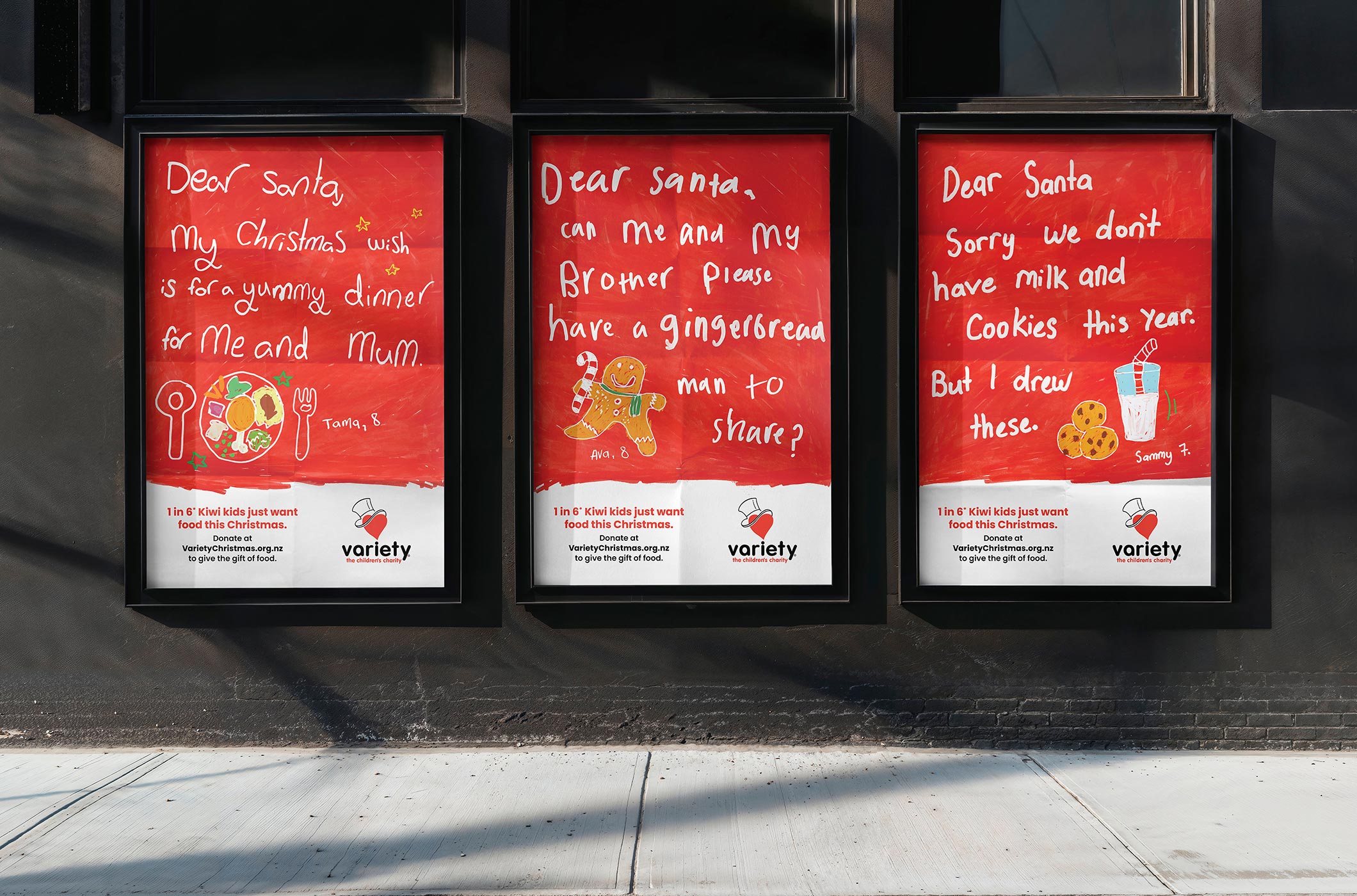 We teamed up with Variety NZ to make a heartfelt appeal for donations across the country. Inspired by actual letters to Santa written by Variety kids, we created a campaign that called for all New Zealand to help answer their simple Christmas wish for food.